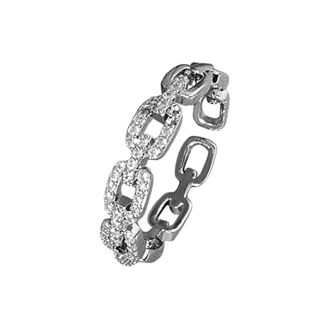 Chain Link Stackable Ring with CZ Accent in Platinum Plating