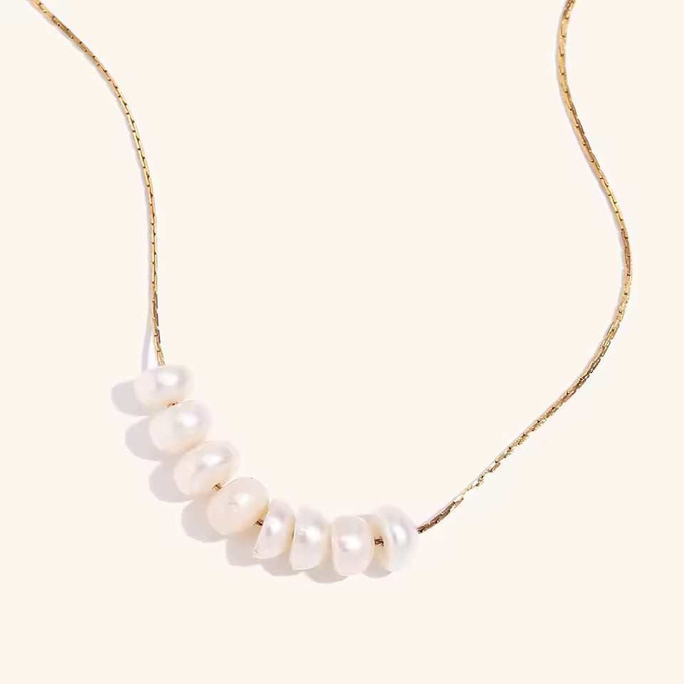 Elegant and timeless, this necklace features a row of lustrous freshwater pearls strung on a delicate gold vermeil chain. Perfect for layering or wearing solo, it adds a soft, feminine touch to any look. Ideal for everyday elegance or as a thoughtful gift for someone special.