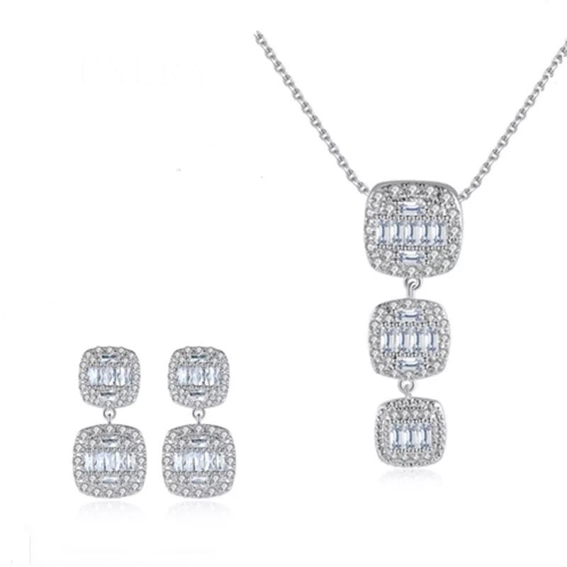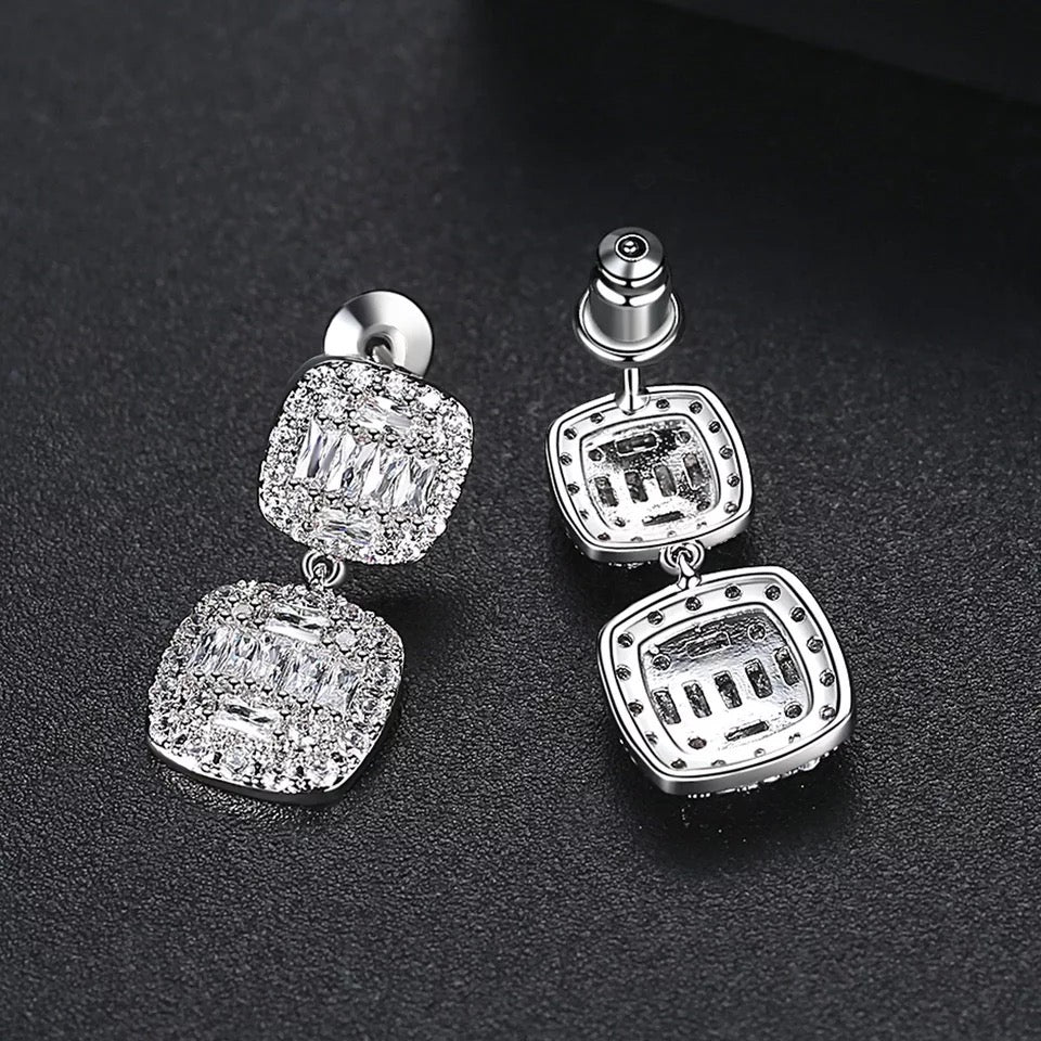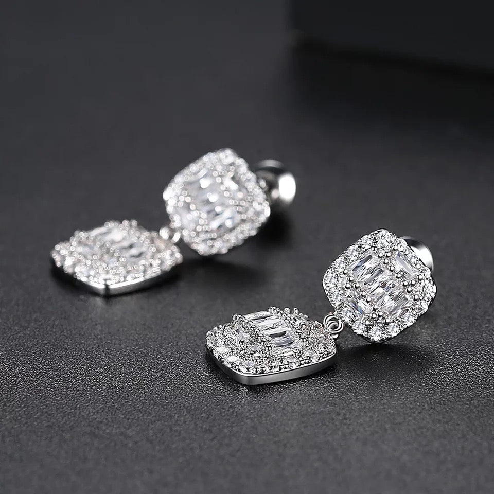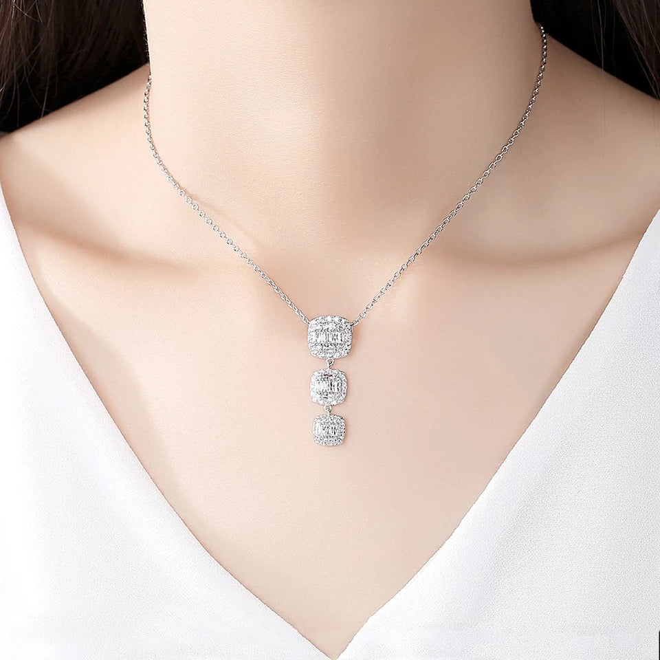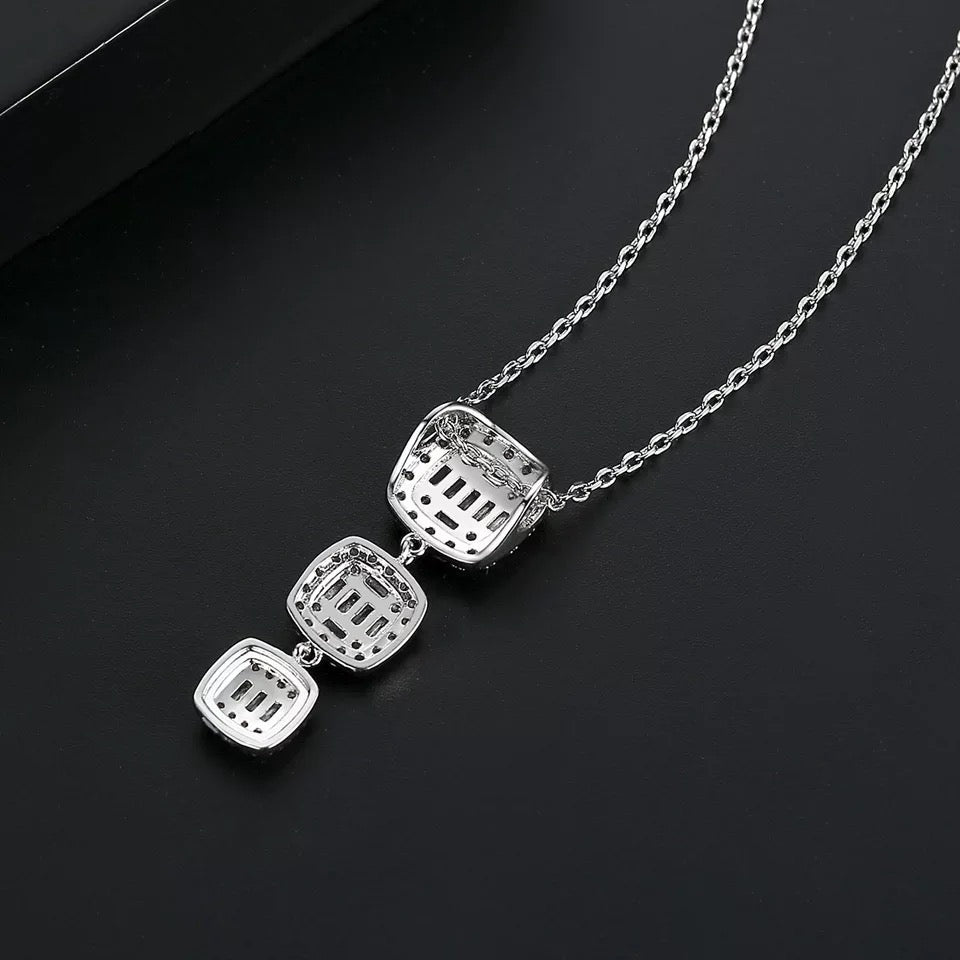 njoy the easy sophistication of this cubic zirconia necklace and earrings set. This vibrant design showcases a linear of cushion-cut halo mosaic cubic zirconia in graduating size.