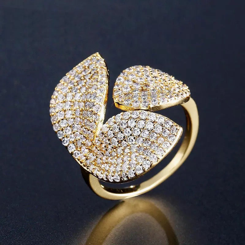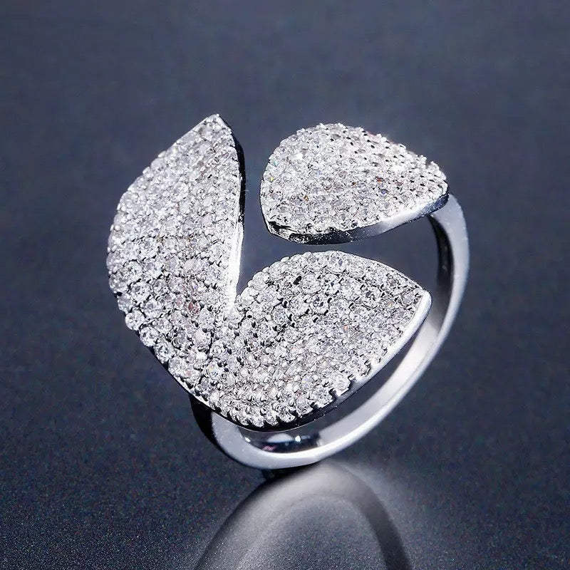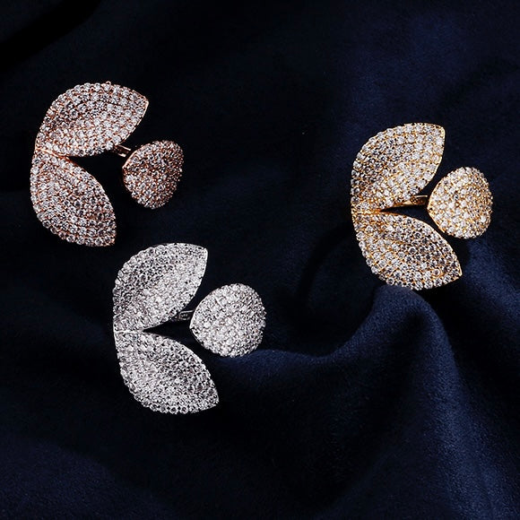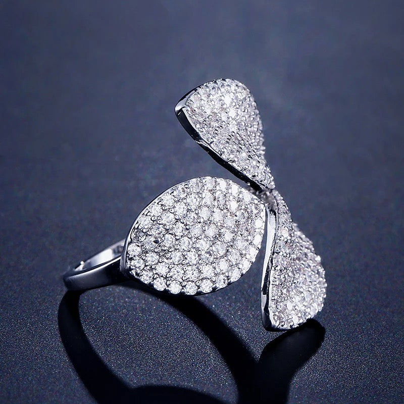 This gorgeous Cubic Zirconia leaf shape ring shimmers with real sparkle and flair.
