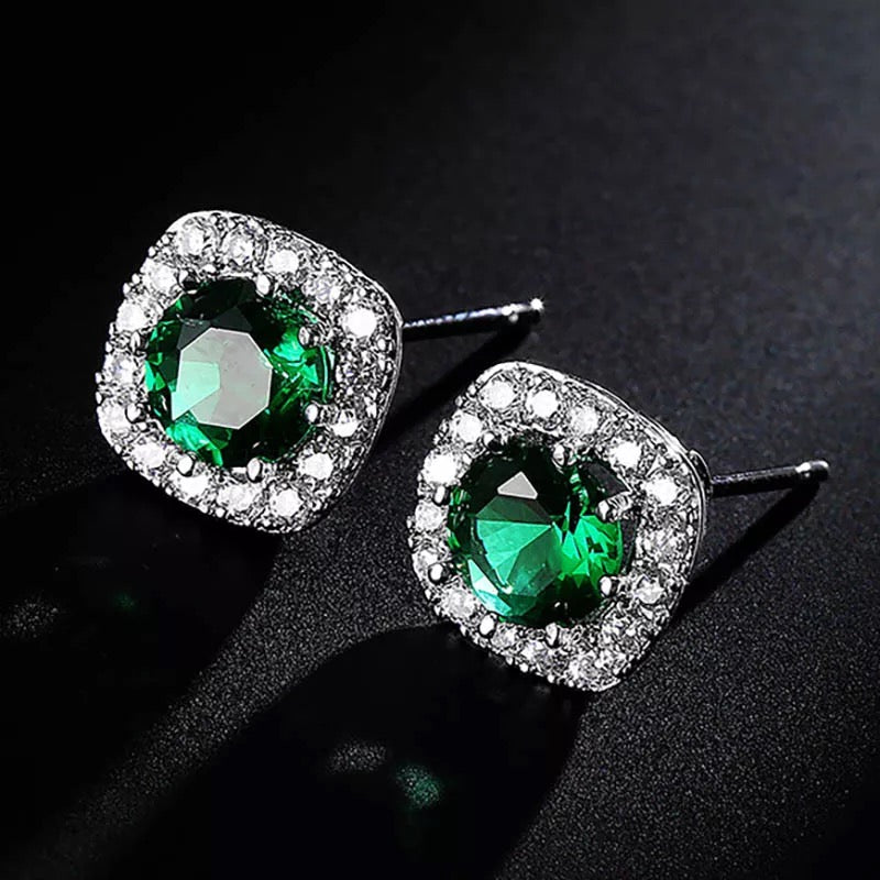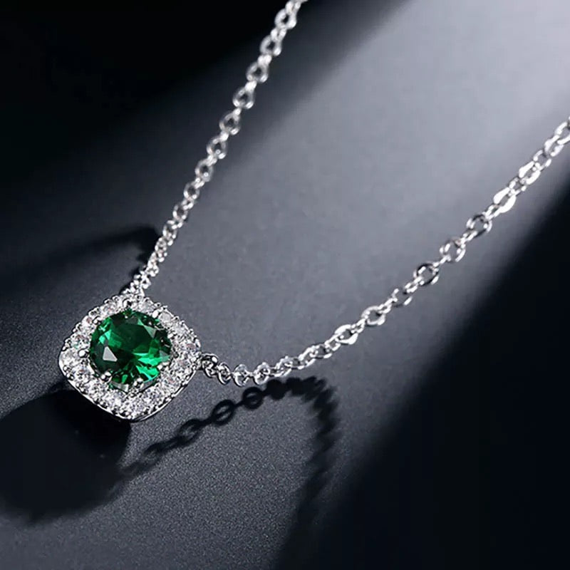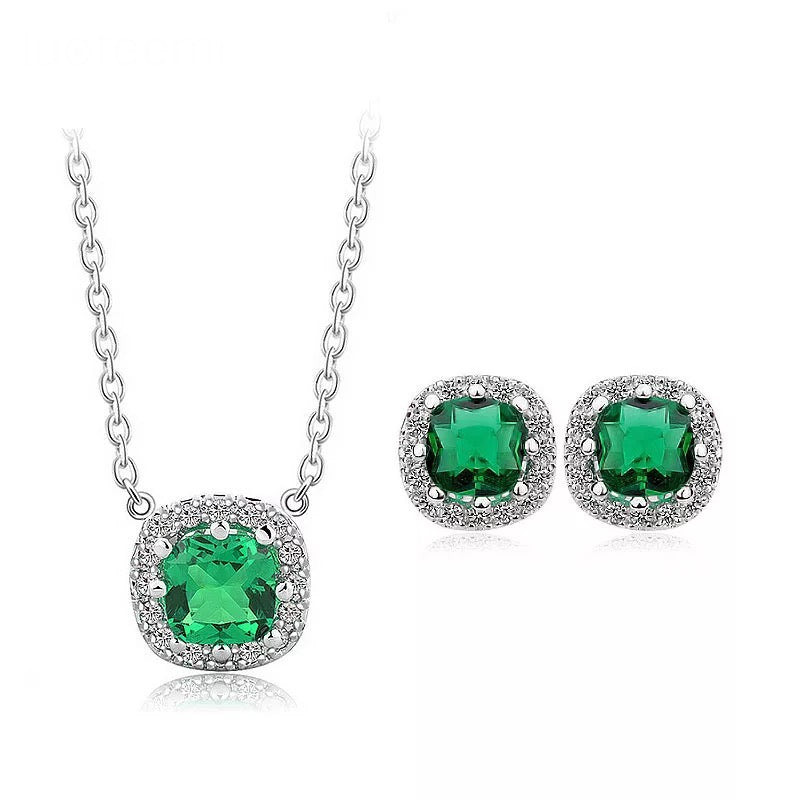 Necklace and Stud Earrings Set in Green Cubic Zirconia