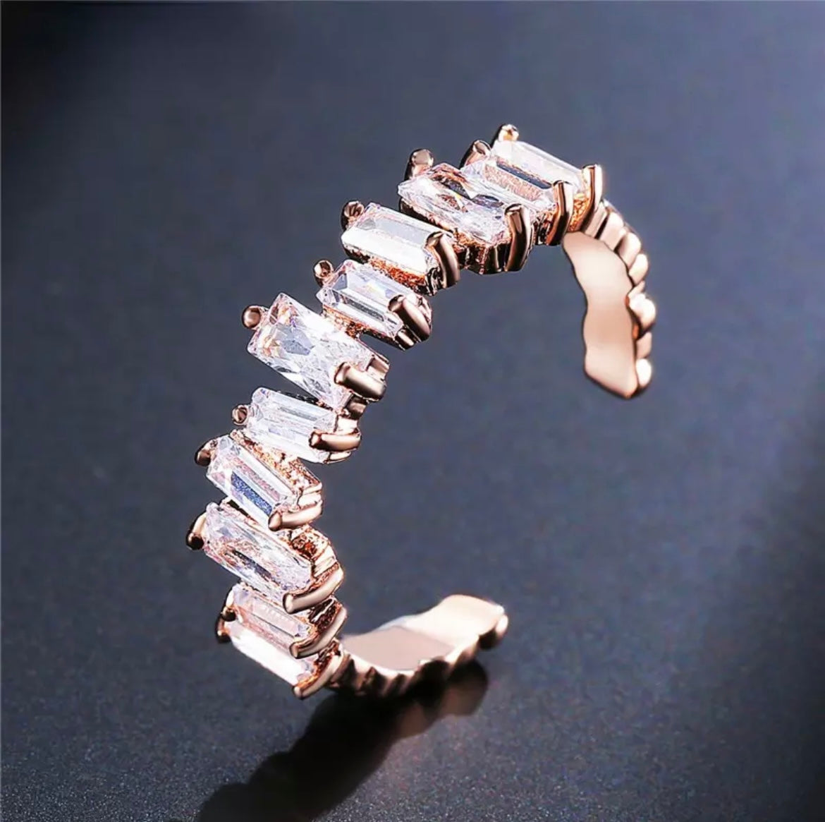 This beautiful fine metal plated CZ baguette ring adds a sparkle to any look. Let it shine on its own or stack as it makes an excellent stacking ring.