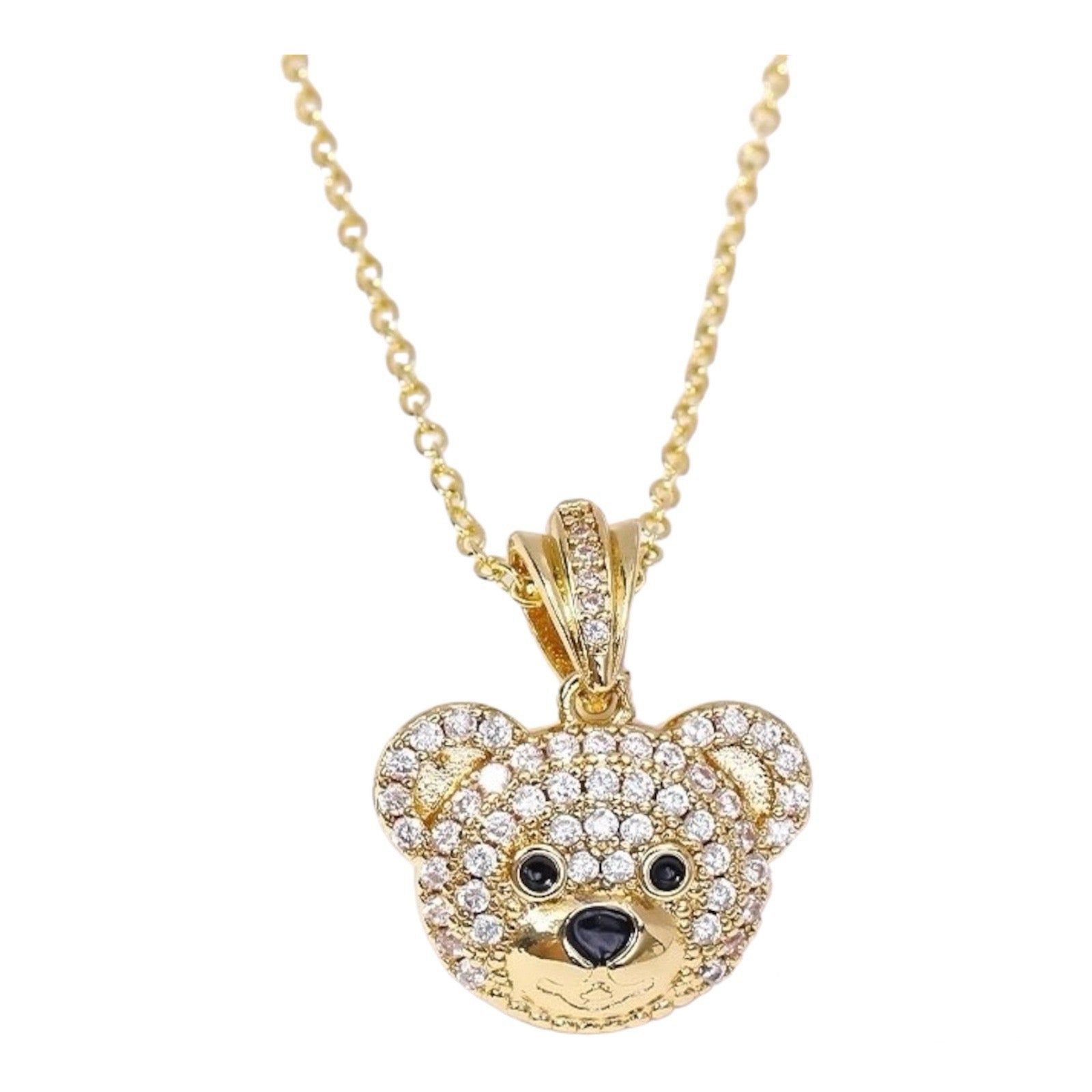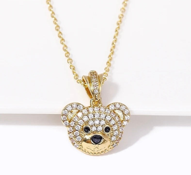 Teddy Bear Pendant Necklace in CZ Pave Accent
